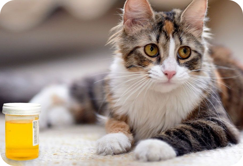 Нормальная моча кошки светло-желтая, прозрачная, без резкого запаха. Плотность 1,020–1,040, кислотность (pH) 6,0–7,0. В норме отсутствуют белок, глюкоза, кетоны, кровь, бактерии. Допускается небольшое количество клеток эпителия, единичные лейкоциты.