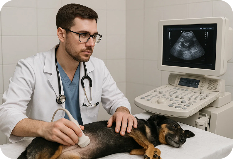 Далее врач изучает имеющиеся на руках у владельца медицинские документы: результаты предыдущих анализов, УЗИ, рентгеновские снимки. Часто для постановки точного диагноза требуется провести дополнительные исследования прямо на приеме. Это может быть ультразвуковая диагностика брюшной полости или рентген грудной клетки для выявления метастазов, а также тонкоигольная биопсия обнаруженной опухоли для цитологического анализа.